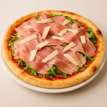 16,30 €mit Mozzarella, Tomatensauce, Parmaschinken, Rucola und Parmesankäse