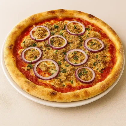 13,20 €mit Mozzarella, Tomatensauce, Thunfisch und Zwiebeln