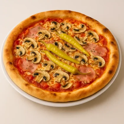13,90 €mit Mozzarella, Tomatensauce, Salami, Schinken, Champignons und Peperoni