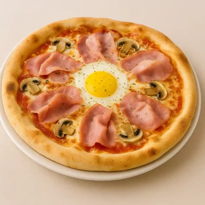 13,20 €mit Mozzarella, Tomatensauce, Schinken, Champignons und Ei